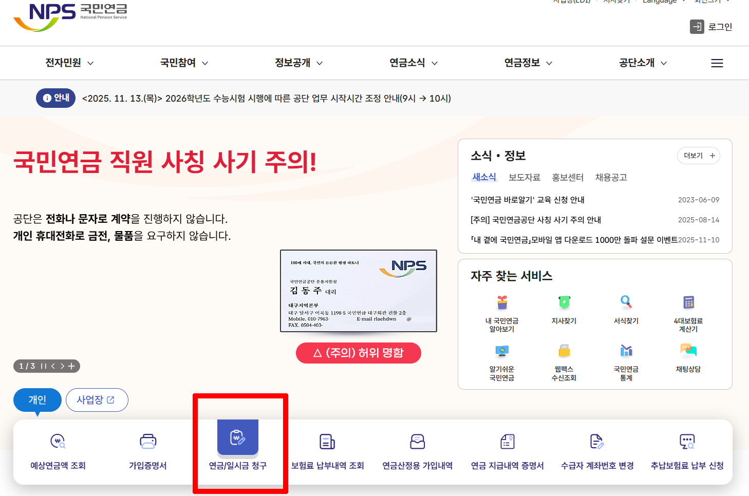 문의전화: ☎1355 (국민연금공단 고객센터)